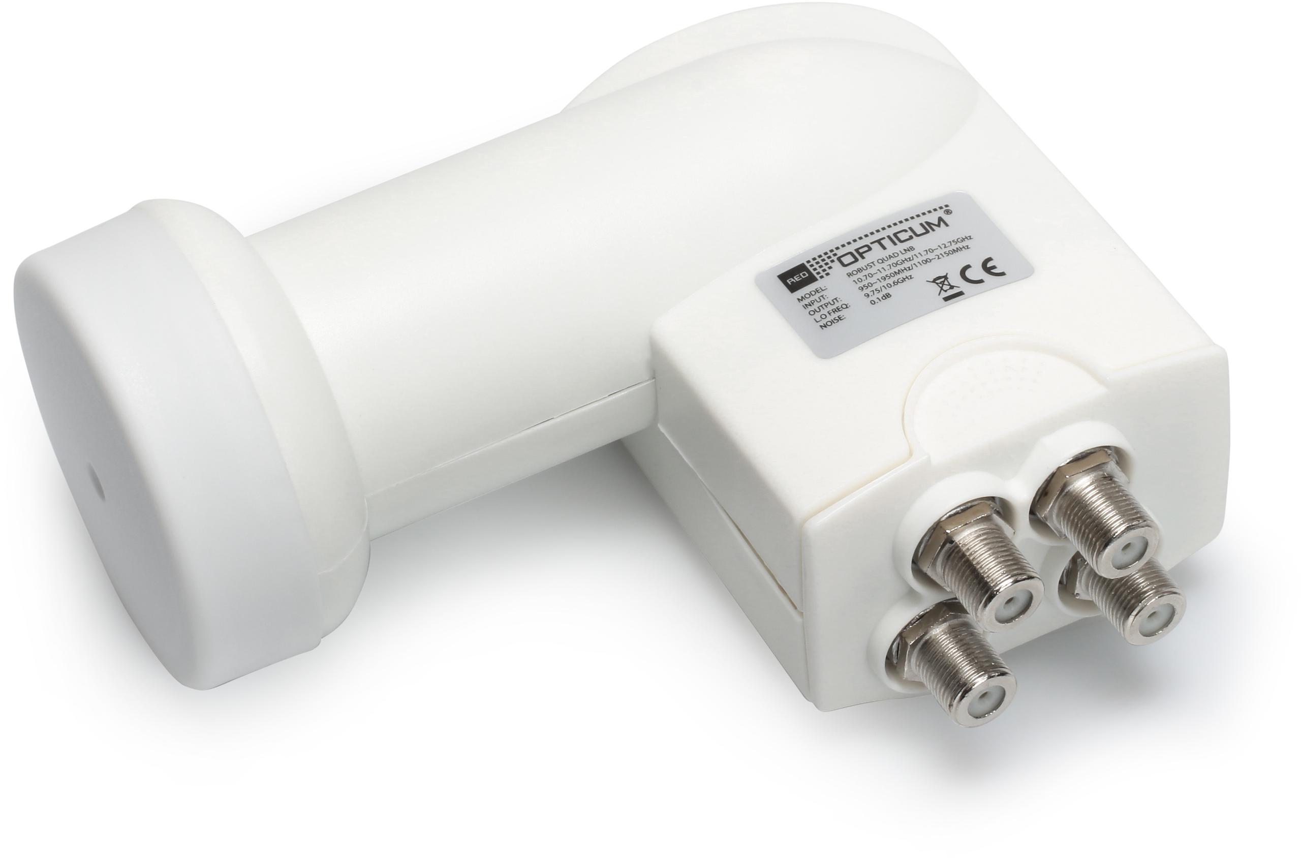 Konwerter Opticum Quad Red Robust jest urządzeniem przeznaczonym do współpracy z czterema tunerami lub dwoma tunerami dwugłowicowymi. Współpracuje on z każdym tunerem satelitarnym, zarówno obsługującym jakość SD jak i HD.